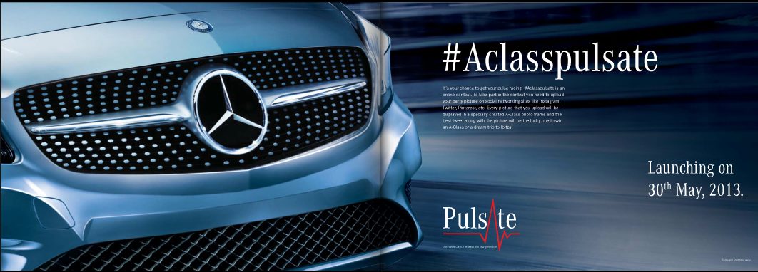 We also reported when Mercedes-Benz India launched a major digital media offensive aimed at creating a buzz around the launch of the New A-Class. Mercedes-Benz India’s digital offensive was launched on May 2. Mercedes-Benz India also launched a unique online contest for the launch of the A-Class luxury compact car. The contest gives the winners a chance to keep a Mercedes A-Class for a complete year or a chance to party in Ibiza. The ongoing contest requires uploading one’s favorite party photograph, tagging #Aclasspulsate. Mercedes-Benz is also running the A-Class campaign in association with India’s leading multimedia youth platform, MTV.