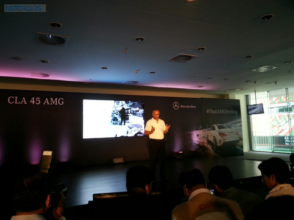 Mr. Eberhard Kern, Managing Director & CEO, Mercedes-Benz India addressing the Press Conference before the CLA 45 AMG launch. Mercedes-AMG is calling the CLA 45 AMG as India’s first compact performance sedan and are targeting this car at young achievers. The award winning engine in this car will be mated to a 7G-DCT gearbox, which features three driving modes and a double-declutch function along with a launch control system they call ‘Race start’.