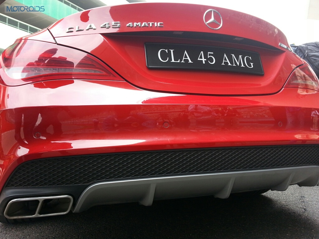 Visual differences between the regular variants and the CLA45 AMG include- more aerodynamic front and rear bumpers, AMG sport steering wheel and gear lever. The CLA45 AMG gets three stage ESP with Curve Dynamic Assist, aerodynamic front and rear bumpers with carbon fiber trims. The CLA45 AMG rides on 18 inch wheels shod with 235/40R18 rubber.