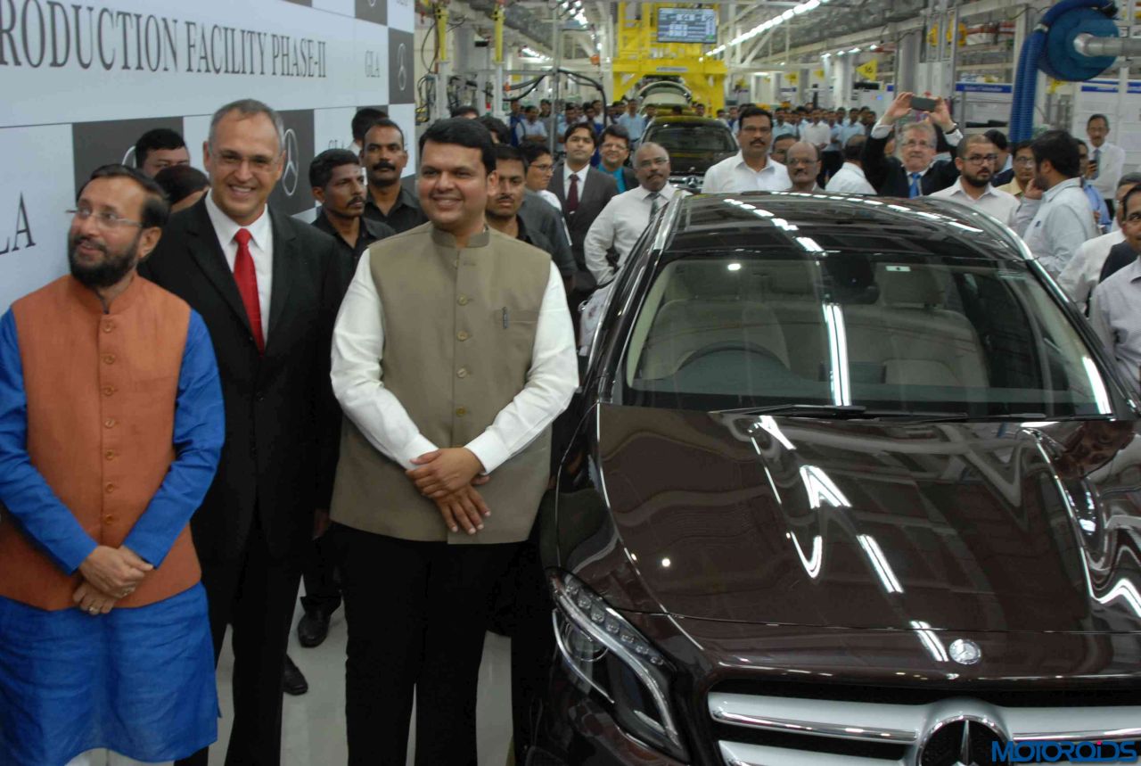 Mercedes-Benz India has opened a brand-new production facility in Chakan, Pune. The new facility is an extension of its existing plant (phase II) and is meant for assembling new generation M-B cars. The plant was inaugurated by Devendra Fadnavis, Chief Minister of Maharashtra and Eberhard Kern, Managing Director and CEO at Mercedes-Benz India. To celebrate the new facility, the German carmaker rolled out its first locally produced GLA, which first came to India in September 2014. Nine months down the line, M-B India has finally begun the local production of this compact crossover. This also marks the first time a FWD (new generation in M-B’s internal speak) compact car from the company has been assembled in India.