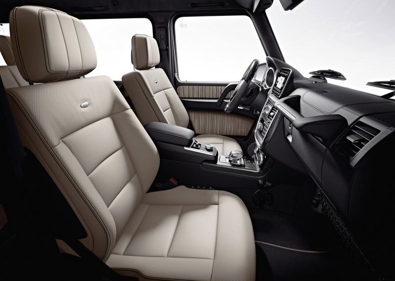 Starting with the exterior, the front end of the G gets the industry popular upgrades of the day time running LED lights under the projector head lamps.The front end bears the familiar boxy look with a chrome bull bar and a big Mercedes-Benz logo in the centre. A closer look reveals the massive intercoolers for the `bi-turbo` engine nestling in the bumper low down on either sides. The bonnet which covers the lumpy engine is clam shell type. Over all the body retains flat panels all around, small doors and small glass/window area. Even the windshield is flat-ish. There are hardly any curves or creases on this car. Without sounding mediorcre, this in my and Indian perspective is a mix of the Mahindra Bolero (rear three quarters ) and a cross between 1st generation Tata Sumo and Tempo Trax (front end). Rather, the latter cars could have possibly taken styling cues from this original timeless off road design of the G. The car has big 20 inch AMG alloy rims with a fat low profile rubber. The exposed door hinges, old school window pane rubber sleeves, thumb press door open handles, high mounted fender-wing turn indicator/lights and many other bits and pieces are keeping with the traditional look. Critics may argue about the interior space, heavy tailgate, wide-ish door shut lines and much more, but retaining these itself keeps the classic look alive. One would expect much more for this price tag, but let’s remind ourselves of the 911 and the Range Rover, the designers have an enormous challenge while designing the newer evolution of these versions while keeping the familiar shape of these cars, the sole reason how they are recognized. The shape of the G lends it a poor Cd of 0.53, similar to the Hummer H2. In layman terms, the design does little to reduce the wind resistance as speed increases, even harder job for AMG boffins then. The G hasn’t got the massive road presence, and I doubt if it will get any second looks from an average passerby.