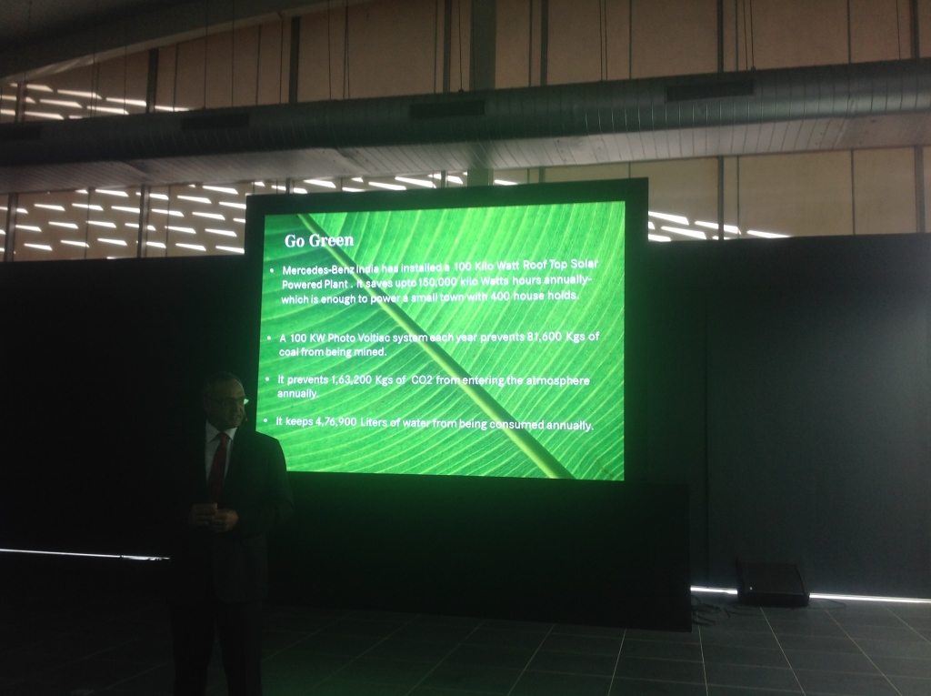 Mr. Kern also outlined the green initiatives taken by Mercedes-Benz in a bid to reduce the factory’s carbon footprint. The modern and minimalist looking administrative building recently installed a rooftop solar power plant capable of producing 100 kW of power. Spread over 12000 sq metres, the solar plant will save 150,000 kilo watt hours annually, enough to power a small town with 400 households. Piyush Arora, Senior VP, Operations, added that environment sustainability is a top priority at Mercedes-Benz India and the company is looking at ways in which they can give back to the environment.