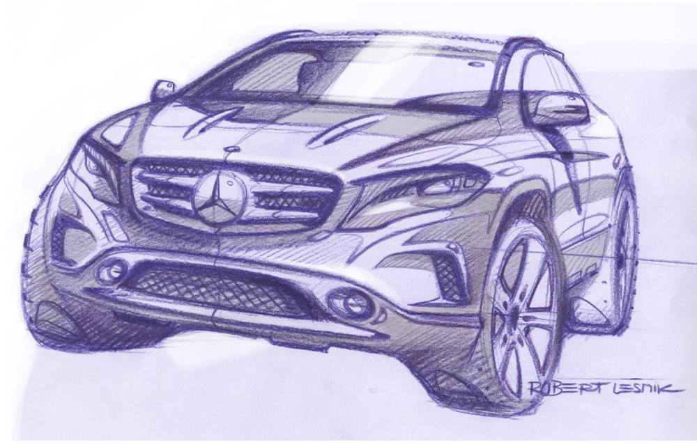 Seen in the lead image is one of the teaser pics that shows nothing but some barren land, exactly the kind of environment most car makers show in the promotions of their soft-roaders. Mercedes has also published some design sketches of the GLA and all this means that Mercedes could soon come up with even more details about the upcoming baby SUV.