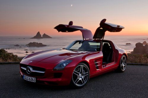Among the highlights of the SLS AMG are its aluminium space-frame body, AMG 6.3-litre V8 front mid-engine with 420 kW (571 hp) and 650 nm of torque, seven-speed dual clutch transmission in a transaxle arrangement and aluminium double-wishbone sports suspension.