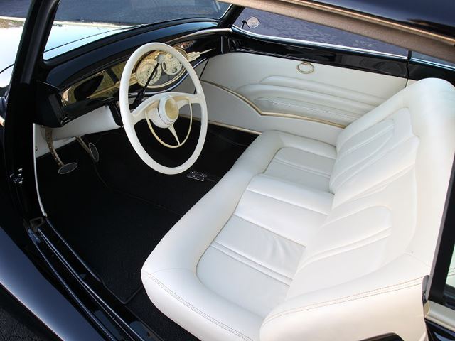 Built with the help of Southern California’s reputed coach-builders Marcel and Luc De Lay, the Black Pearl’s period, achingly beautiful, tear-drop shaped bodywork is here to warm your cockles once more, just like his tunes. Coated in a deep PPG black contrasted with brushed brass trim, with an all-white interior sporting Art Deco style dash gauges, the Black Pearl rests on a custom chassis based on a 1948 Jaguar Mk 4 sedan with power coming from a 375-hp, 5.0 liter Ford crate V8 mated to a Ford C4 automatic box. We wish the Metallica front-man all the best will his stunning new creation!