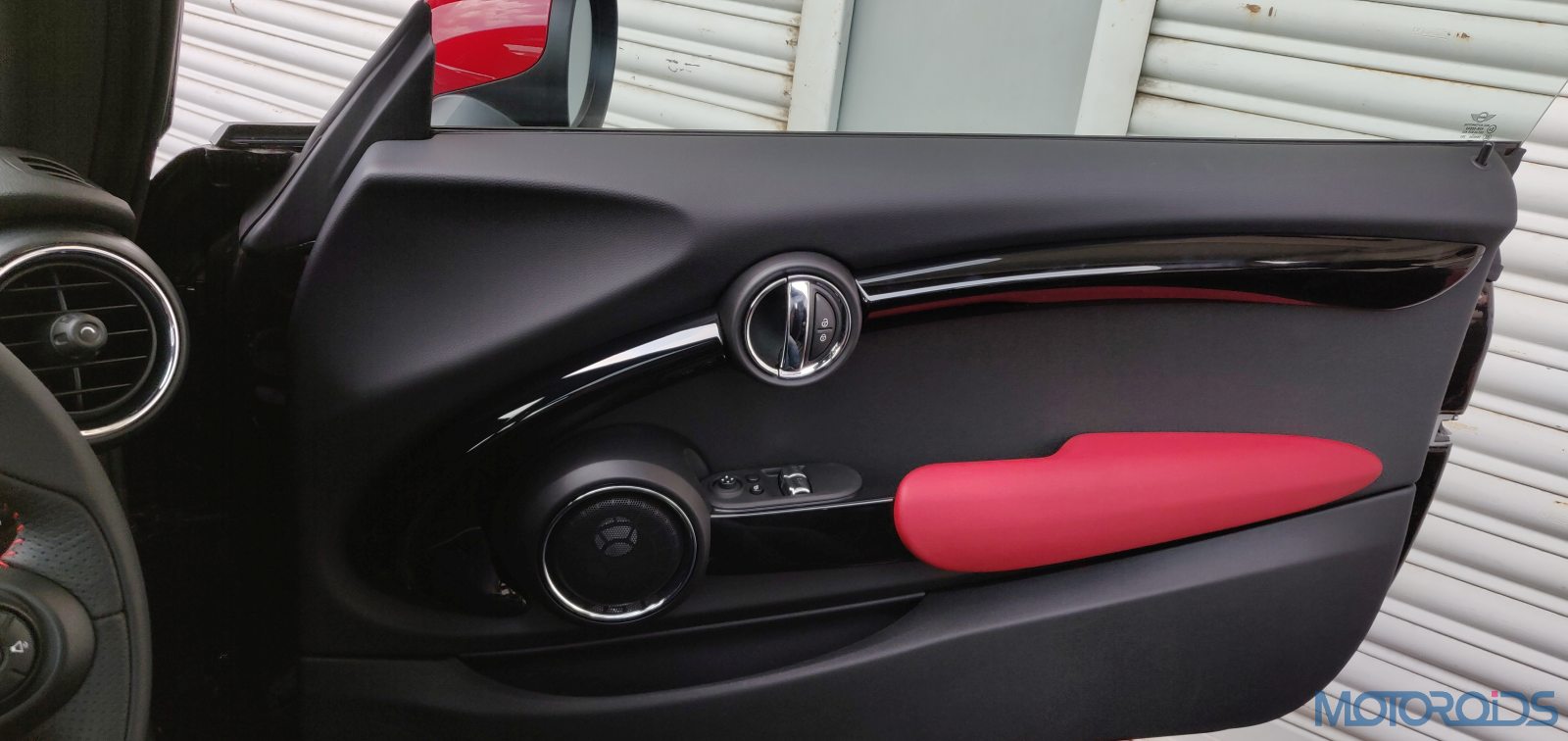 So inside the cabin, you get tasty bits like a premium Harmon Kardon audio system, an HUD, a crisp central display and a backseat for emergencies. There’s more in the form of leather, JCW badging at a lot of places, LED illumination and a lot more. The good part is, a lot of it is standard and optional bits include adaptive suspension, tyre pressure monitoring system, 18″ alloys and a panoramic glass roof. The Rebel Green paint shade is optional too, but otherwise, there are some 10 other shades you can pick from. On the outside, there’s a red stripe across the front grille, aggressive in appearance inserts and optional bits again which can make this already unique thing stand out even more.