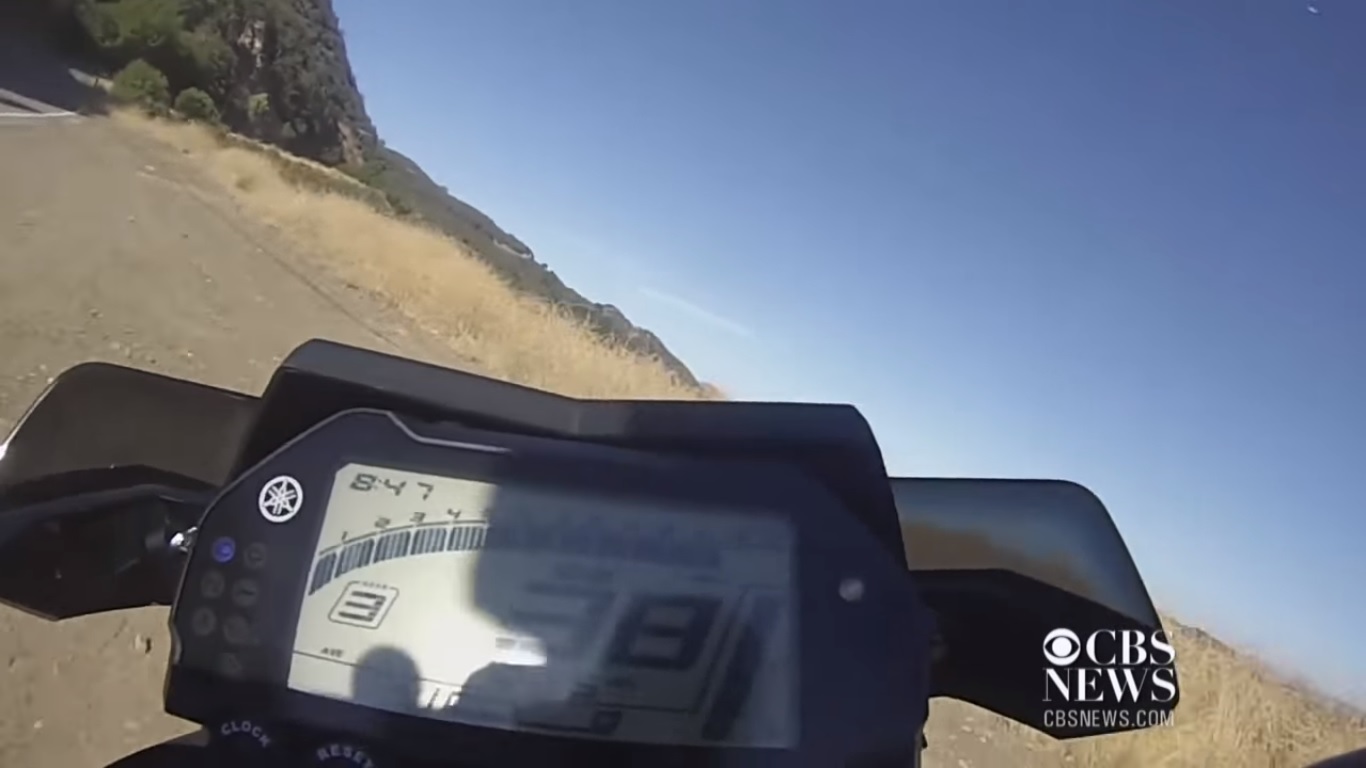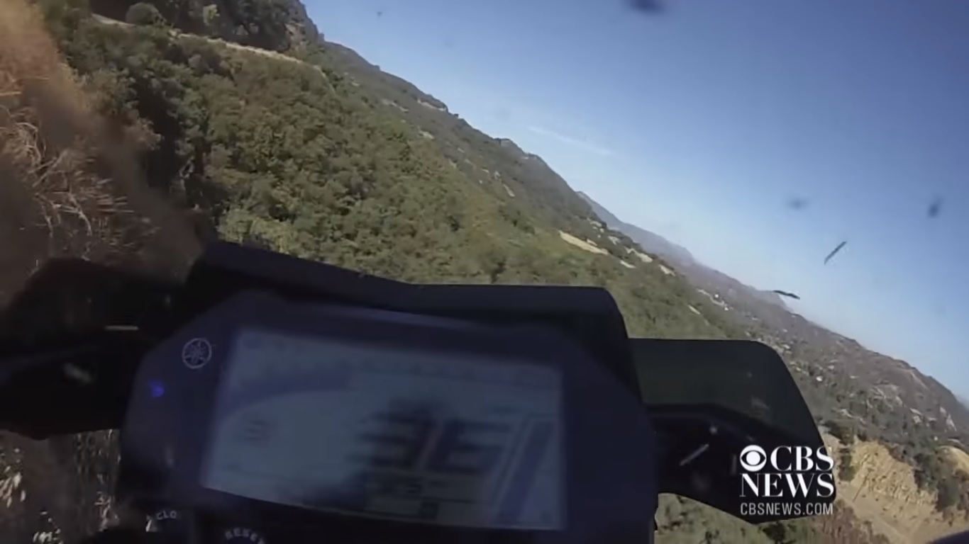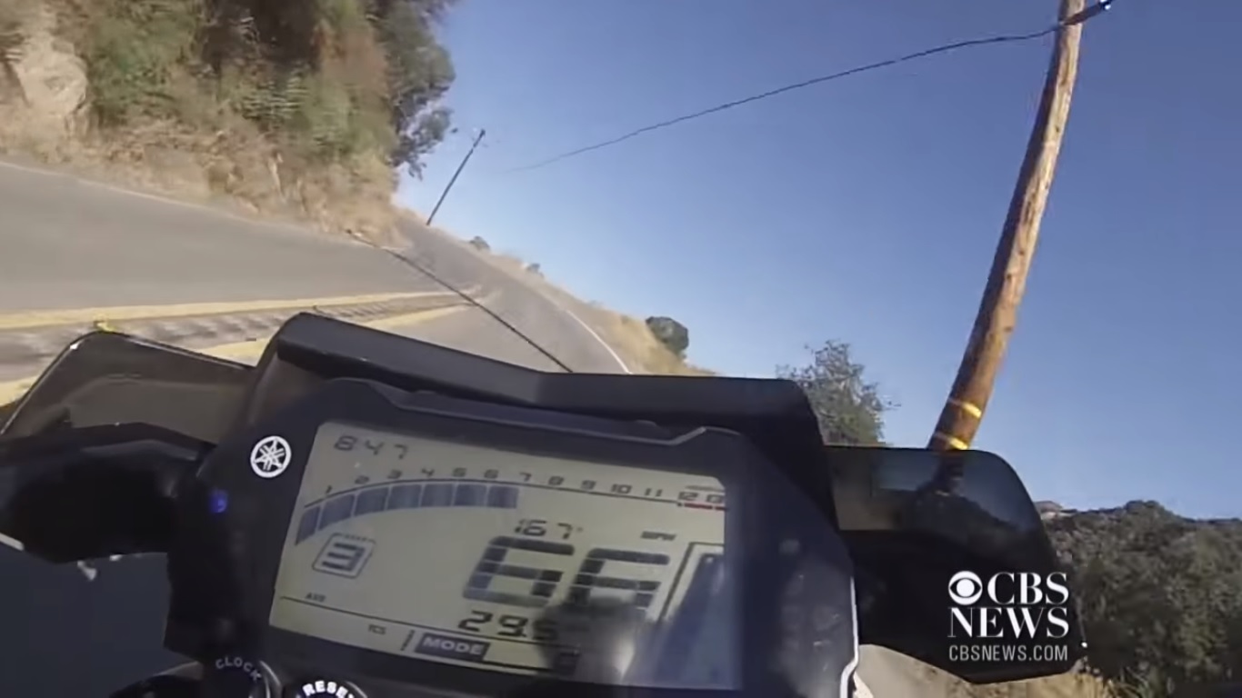 Murray claims that his steering of his litre-class motorcycle locked up which caused him to go off the road. With very little run-off area, he could not stop the motorcycle in time and was plunged off the cliff. Here’s the video footage from Murray’s GoPro camera via CBS News: