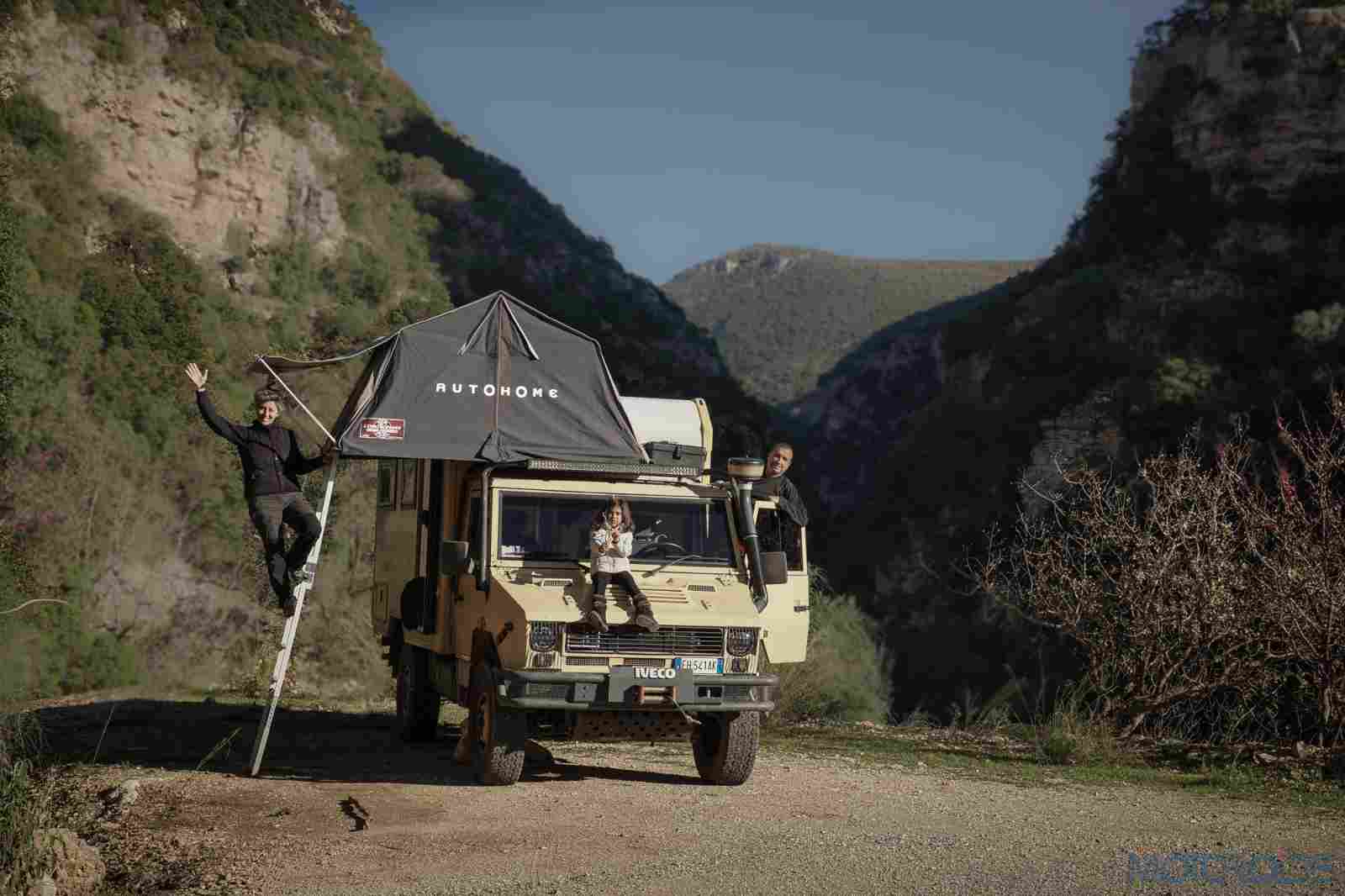 Akis often contributed to Motoroids when he settled with his family in the Motor Valley of Italy. Living in the heaven of supercars, just 20 minutes from Maranello and Modena, was not enough for the Greek adventurers who seemed to be addicted to Overland travel and nomadic lifestyle. Two years ago, Akis bought a rugged Iveco VM90 – a personnel transporter used in military expeditions in places such as Afghanistan and Iraq. The family transformed the Iveco into a tiny camper van for three people and they started designing their next trip around the world.