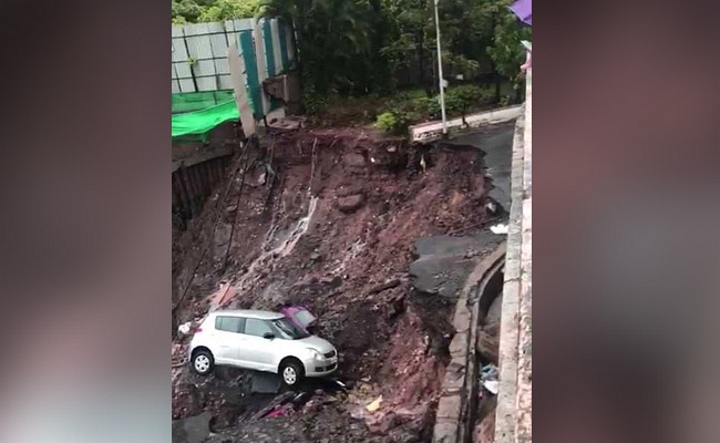 Mumbai: Road Caves In Due To Incessant Rain; Takes Down Several Parked Vehicles