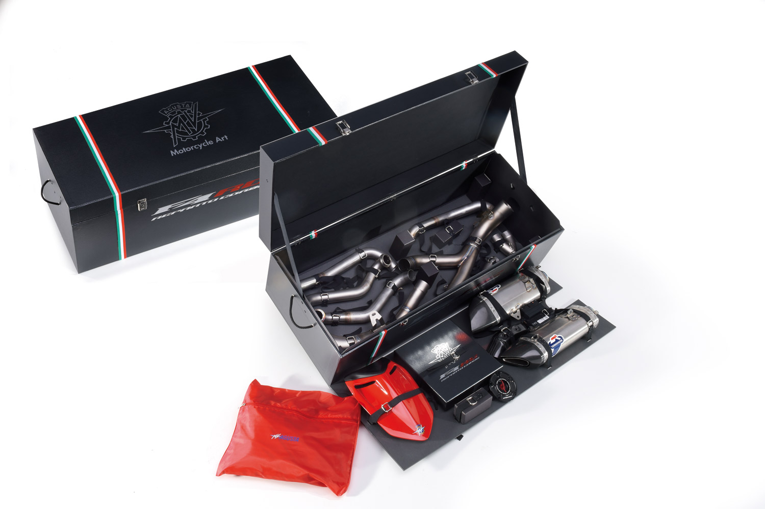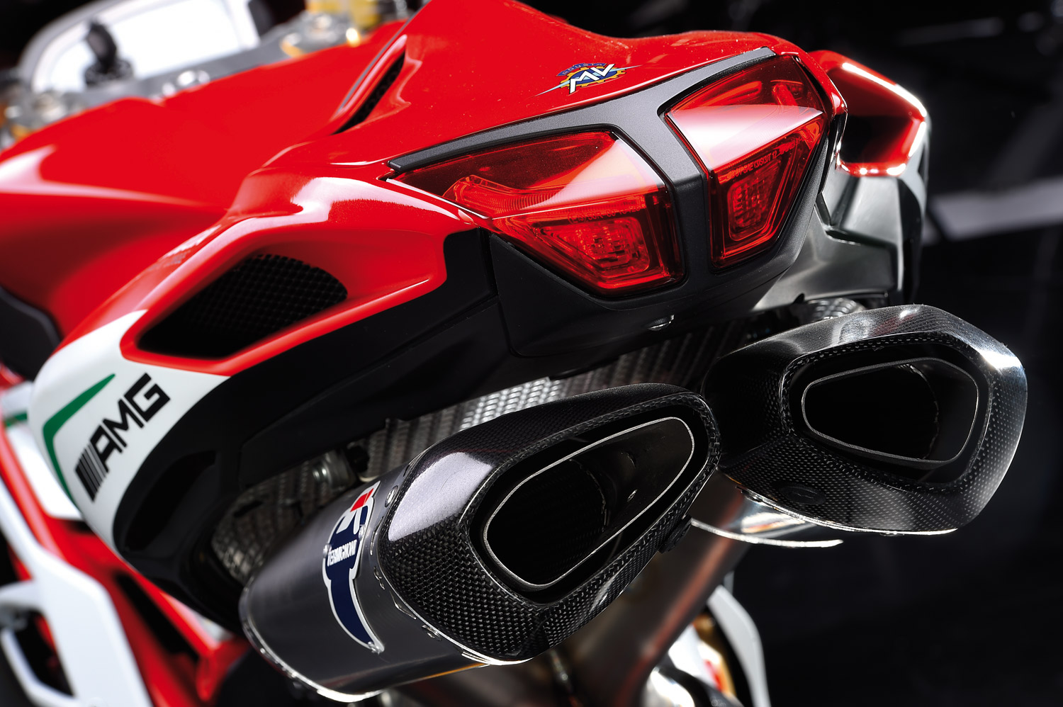 What you also get along with the MV Agusta F4 RC is a complete track riding kit, which cuts weight by another 6 kg. With the assembly of specific components, such as the titanium Termignoni exhaust system with dedicated control unit, the bike reaches an exceptionally high maximum power of 212 hp at 13600 rpm.