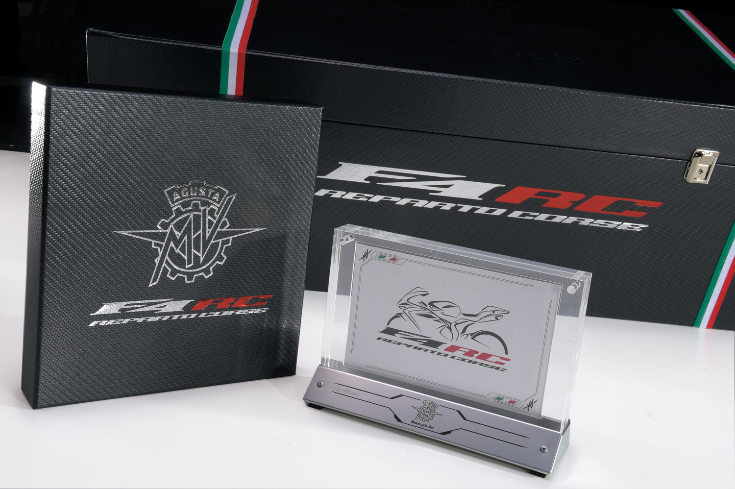 Each one of the 250 Monalisas will come with a certificate of authenticity signed by MV Agusta CEO, Giovani Castigloni and are powered by a hand assembled, 4-cylinder Corsa Corta engine. Characterised by a 79 mm bore and a 50.9 mm stroke, each motorcycle features radial valves, a technical tradition that began with the very first F4 engine. In order to reduce weight, MV Agusta has employed a series of components in magnesium alloy, a material used, most importantly, for the cylinder head cover yet also on the clutch, chain, removable gearboxselector, labyrinth blow-by, alternator, ABS pick up sump and lubricating filter and oil duct support flange covers. Bolts and screws are All-titanium, saving another 1.1 kilos. Meticulous work has gone into making components lighter which makes the F4 RC dance with a 205 hp vigour at 13,450 rpm (212 hp on the kit version with exhaust system and dedicated control unit) against a torque of 115 Nm at 9300 rpm.