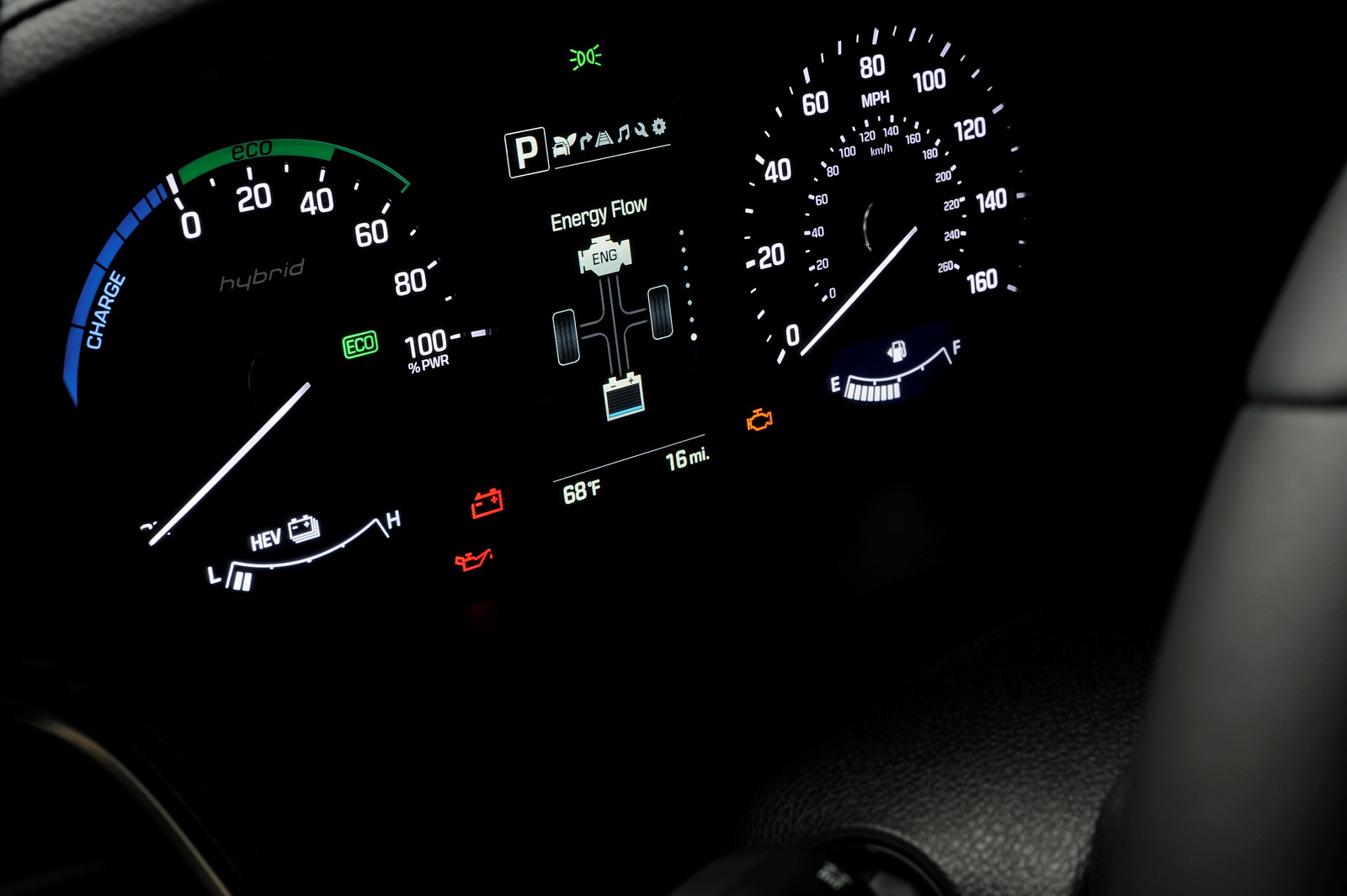 The Transmission-Mounted Electrical Device (TMED) is a 50 kW electric motor that’s used in place of a torque converter and is 32 percent more powerful than the one in the Sonata Hybrid, allowing for all-electric operation at higher speeds. The internal combustion engine is the same 2.0-liter four-cylinder GDI direct injection petrol unit that’s also used in the Sonata Hybrid. It puts out 154hp and 140 lb-ft of torque and is mated to a six-speed automatic transmission. Total output of the Sonata PHEV is 202hp at 6,000 rpm.