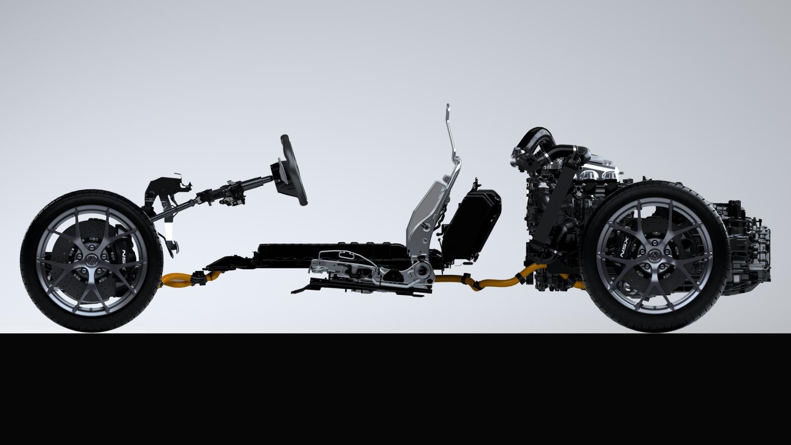 Performance figures haven’t been disclosed yet, but powering the new car is a twin-turbocharged 75-degree DOHC V6 engine with a 9-speed dual clutch transmission (DCT) and three-electric motor Sport Hybrid system—integrated with an ultra-rigid and lightweight multi-material body with world’s-first material applications and manufacturing processes. The V6 employs a race inspired compact valve train and dry sump lubrication system which helps lower the center of gravity.