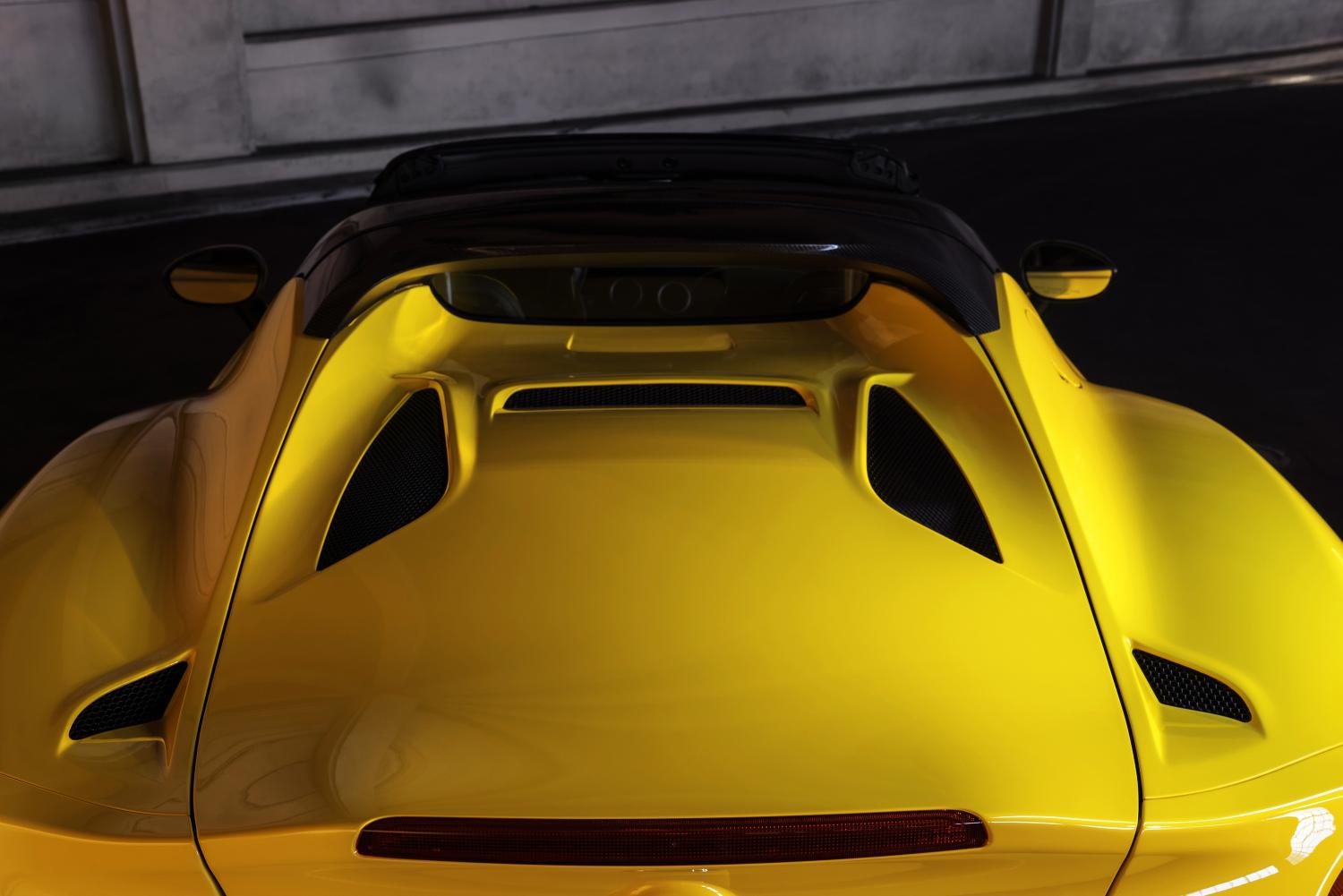 Alfa Romeo engineers were able to minimise structural differences between the 4C Spider and 4C Coupé. The 4C Spider features a unilateral carbon fibre windscreen frame that is adhered and bolted to the monocoque chassis; a specially-contoured aluminium rollover bar (underneath the “halo”) which provides mounting points for the new rear deck-lid; unique upper body brackets and a high-strength steel engine compartment cross beam to maximise torsional rigidity.