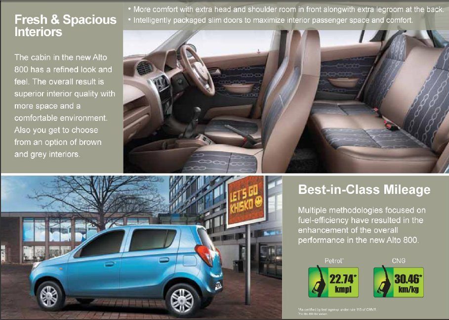 The new Maruti Suzuki Alto 800 is available in two variants- Petrol and Petrol+CNG. The fuel efficiency of the CNG variant is said to be 30.46 kmpl – a boon in today’s torrid times of high fuel prices.