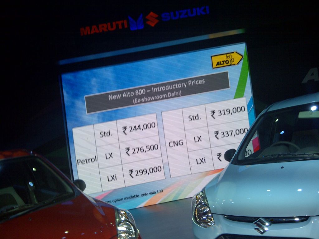 Maruti Suzuki is launching its all new Alto 800 in New Delhi today. The prices for all the variants of the new car are as stated below (Ex-Delhi)