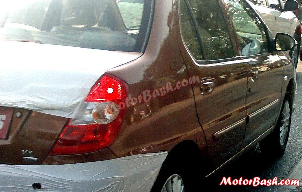 The upcoming 2013 Tata Indigo eCS facelift has been spotted testing on numerous occasions and as can be made out from the recent batch of pics, the car sports revised headlamps (which we know would get a ‘smoked’ look), new design alloy wheels, new front grille, new front bumper, probably a new hood, revised rear bumper and maybe a new boot lid. The car will also come with a new exterior colour option, that of the ‘Urban Bronze’. It may be noted that Tata Motors has always been regular with coming up with new colour schemes for its Indica/Indigo range of cars and it is hence no surprise that the car maker plans to introduce a new colour option with the facelift. The ‘Urban Bronze’ is also being offered by the car maker on its Tata Safari Storme SUV.