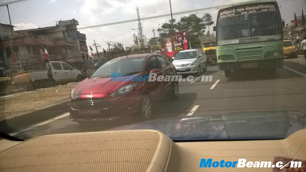 And yet again, the new 2014 Ford Fiesta facelift has been spotted testing in India. It may be noted that the updated Fiesta made its India debut at the Auto Expo 2014 last month and has been spotted testing on our roads earlier too. CLICK HERE for 2014 Ford Fiesta facelift images from earlier sighting in India. It is being said that the 2014 Ford Fiesta facelift India launch could happen sometime next month.