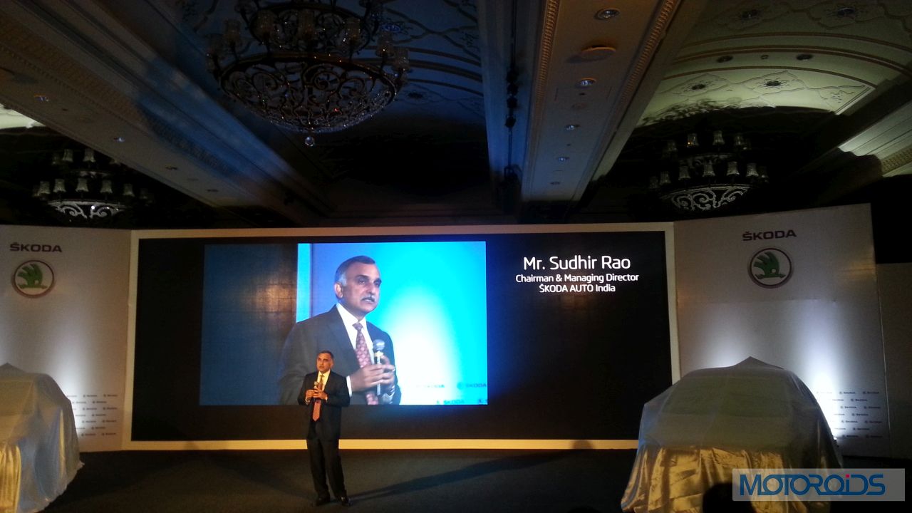 The Skoda Rapid launch event begins as Skoda Auto India Chairman and Managing Director Sudhir Rao addresses the journalist.