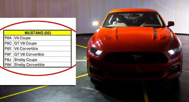 Seen here is a “2015MY Ford Body Code Types” chart that surfaced on the Mustang6G forums recently and to our surprise- listen in this chart are Shelby Coupe and Convertible variants!
