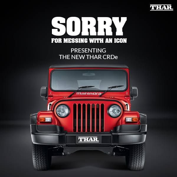The new, 2015 Mahindra Thar CRDe facelift was launched at an event in Nasik yesterday, and has been priced at INR 8.03 lakh (ex-showroom Mumbai & Nasik).