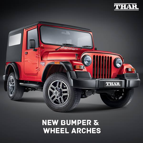 The new Thar gets a healthier set of side footsteps, while the wheel arch trim has been beefed up too.