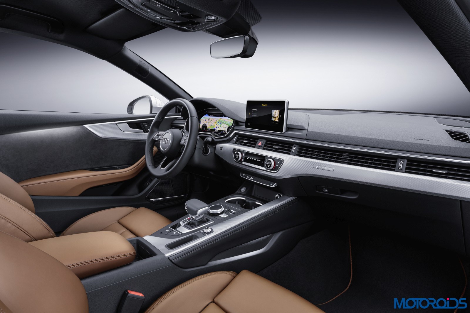 The A5 Coupé also gets the optional Audi virtual cockpit for the first time, a 12.3-inch TFT display with a resolution of 1,440 x 540 pixels. Together with the MMI navigation plus including 8.3-inch monitor on the centre console, it forms the central information unit. The focal point of the MMI terminal is the round rotary pushbutton. Its surface is home to the touch-sensitive touchpad. The touchpad is used to input characters and also for multifinger gestures, enabling the driver to zoom in on the map, for example. The new, more natural voice control system can recognise input made using everyday language, such as: “I would like to call Peter.”