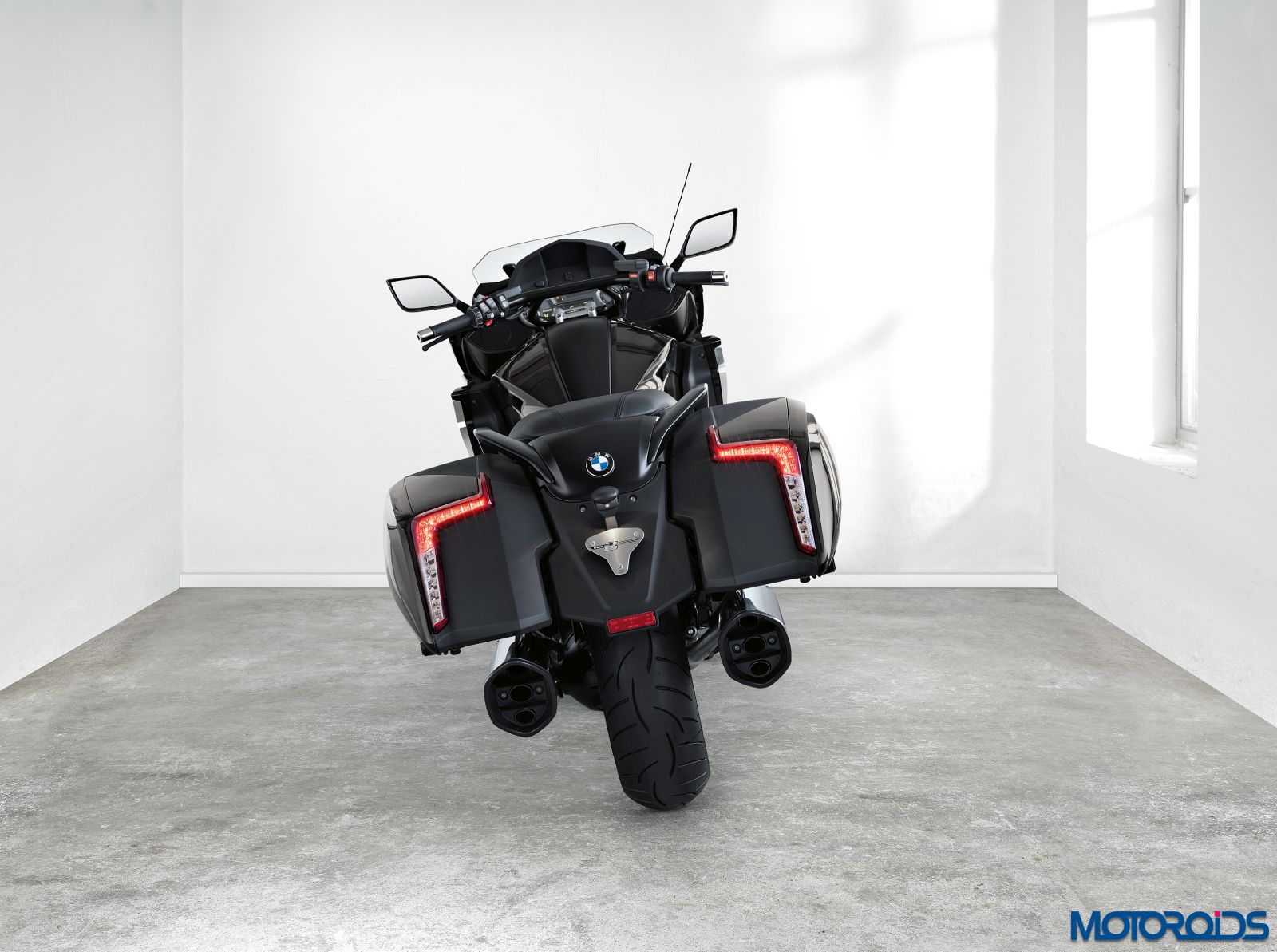 Based on the K 1600 GT, the K 1600 B receives a new sub-frame at the rear to give the model a completely new posterior. The model comes equipped with a sleek hard case on either side that feature integrated LED tail lights. The rear mudguard can be folded upwards for easier removal of the rear wheel and is flanked by chrome plated silencers on either side. Upfront, the K 1600 B receives a windscreen.