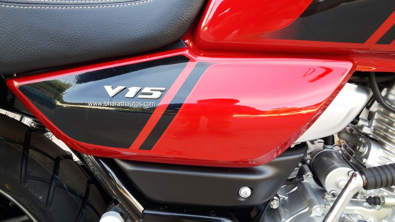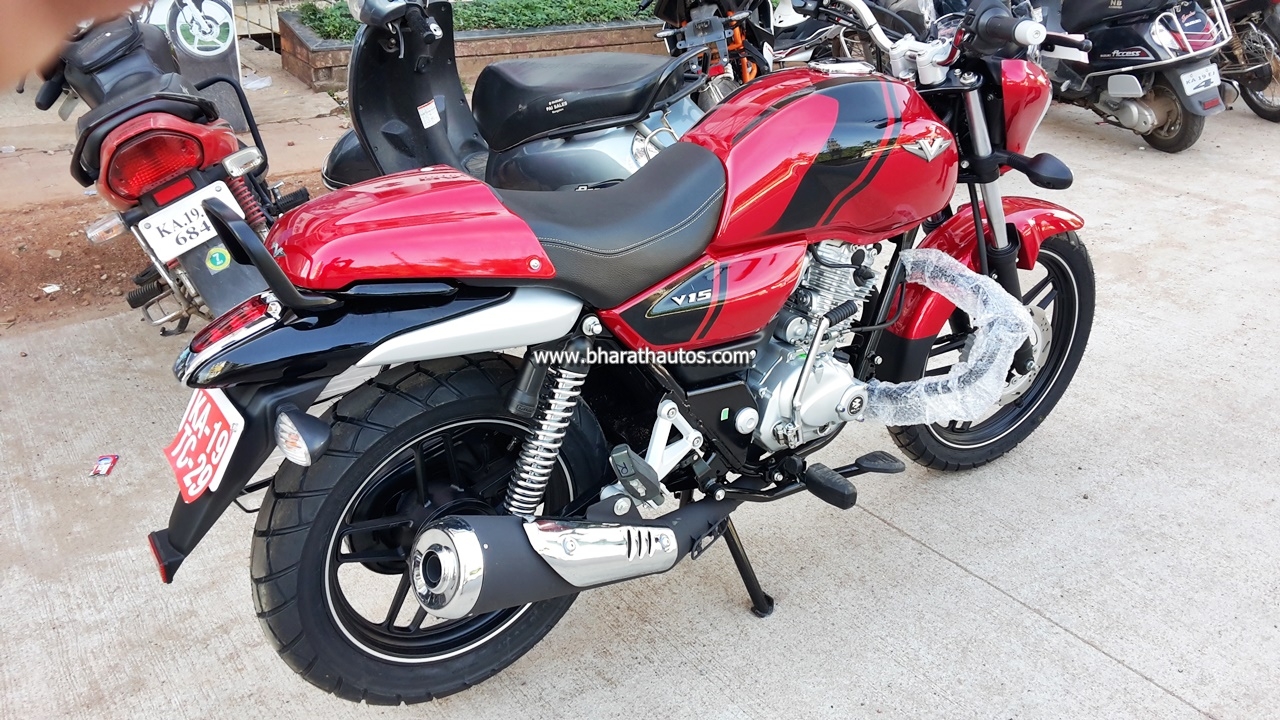 It seems Bajaj Auto has introduced a new colour for their recently launched V15 premium commuter motorcycle. Primarily, the Bajaj V15 was introduced in the Indian market in Pearl White and Ebony Black colour schemes. The Pearl White livery for the V had the front fender, headlamp housing, fuel tank , side panels, and the rear cowl painted in white and red coloured decals decorating the tank and the side panels.