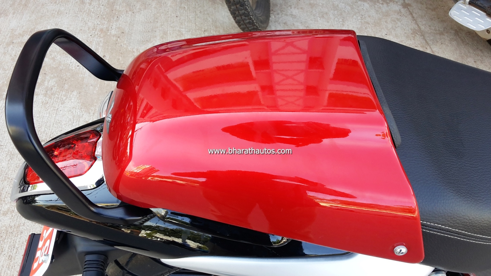 The Ebony Black version, on the other hand, replaces the white paint of the Pearl White colour scheme with Black while the red decals remain the same. Now speaking of the new colour, an unregistered model of the Bajaj V has been spotted in a newly introduced colour scheme, reportedly called as the ‘Cocktail Wine Red’. Judging from the licence plate, it seems that the vehicle was spotted at a dealership in Mangalore, Karnataka.
