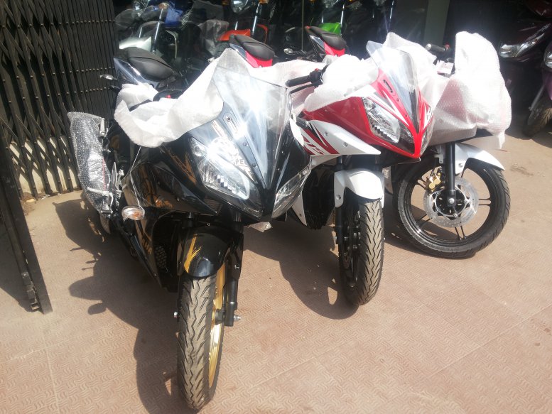 Seen here are a handful of images of the new colour schemes for Yamaha R15 and Yamaha FZ. These images have been taken by Xbhpian Naveen, who claims to have snapped these bikes at a dealership.
