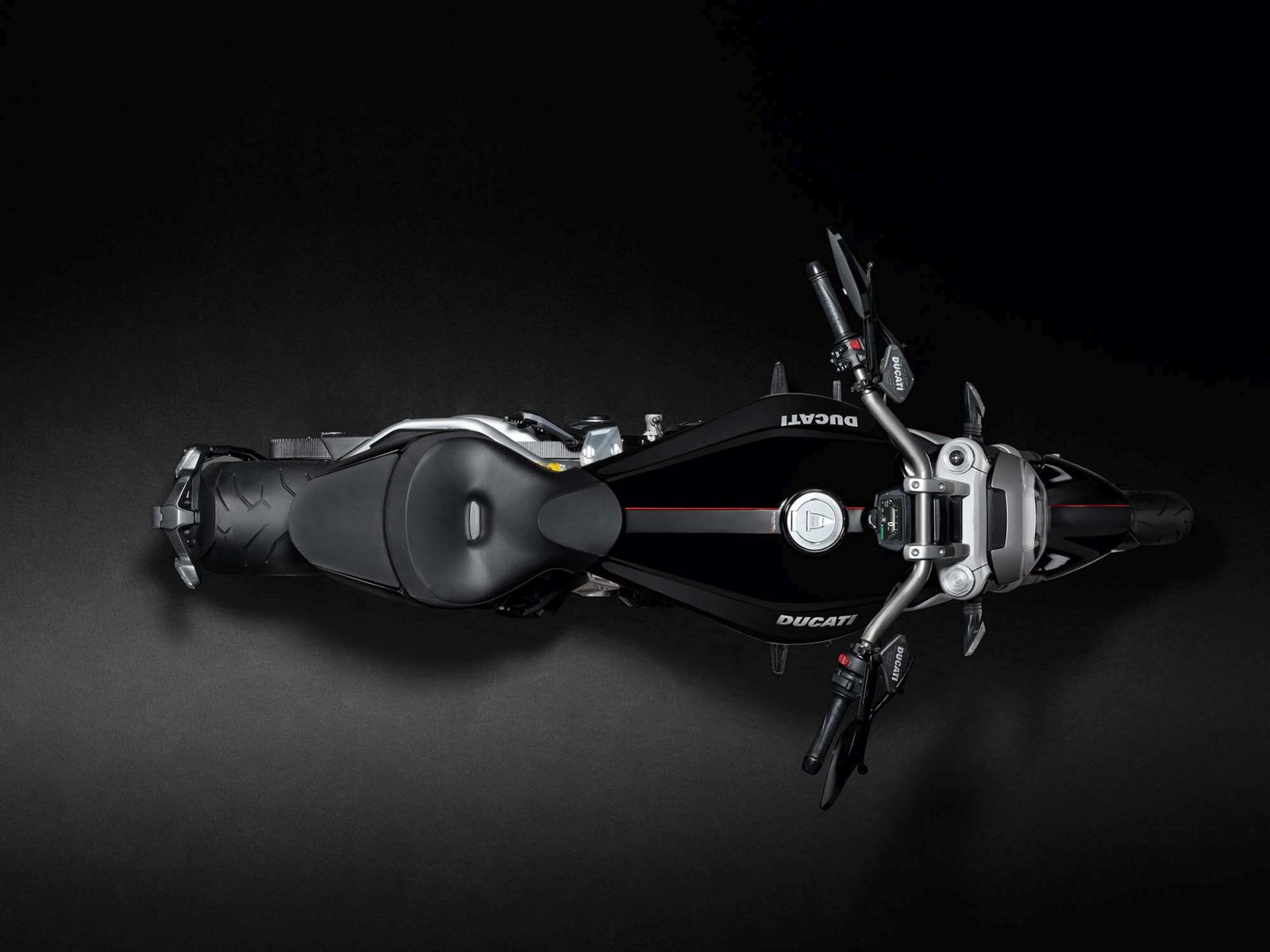 The Ducati XDiavel S gets even more premium quality materials and refined finishing blend with top-level technology. On the fuel tank, the XDiavel S has an exclusive gloss black paint (Thrilling Black) with a matt black band and a red thread in the centre. The whole engine and, in particular, the belt covers are also in gloss black, and the latter are finished to leave the aluminium visible. XDiavel also features Brembo brakes.