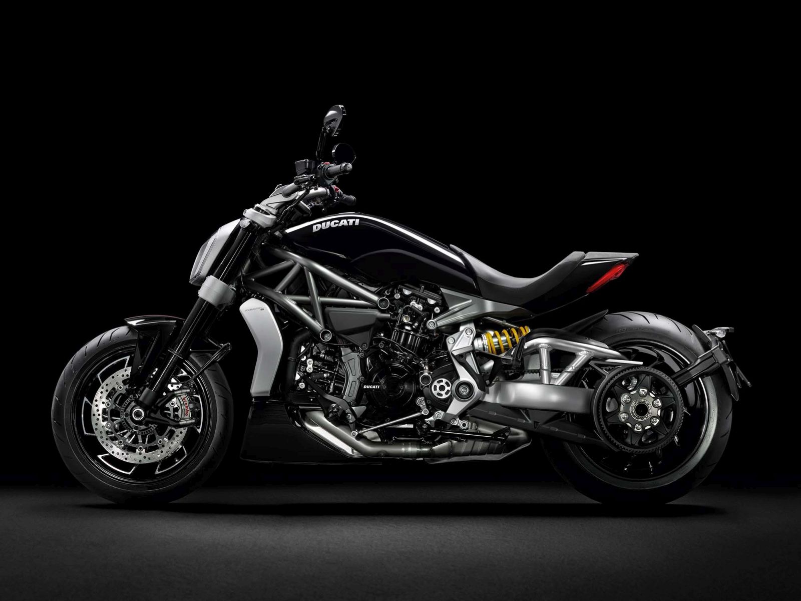 Unveiled right before the 2015 EICMA Show in Milan, the Xdiavel is the first cruiser from Ducati to use a belt-type final transmission. The XDiavel is designed to be a fusion of two worlds: the Cruiser world – low speeds, relaxed riding, long journeys and feet forward ergonomics and the Ducati world, characterized by Italian style, refined engineering and unparalleled performance.