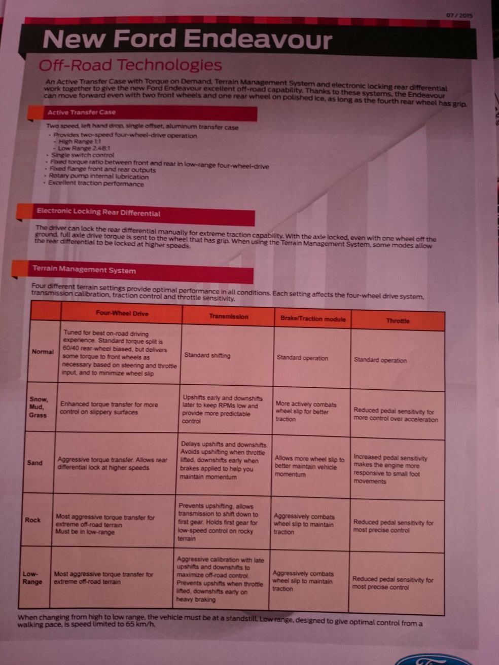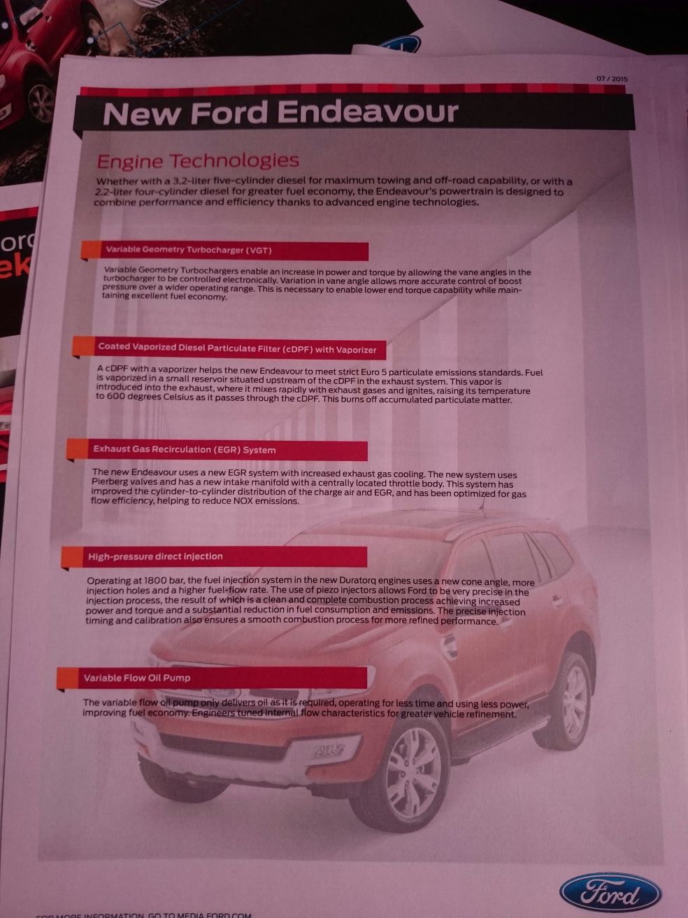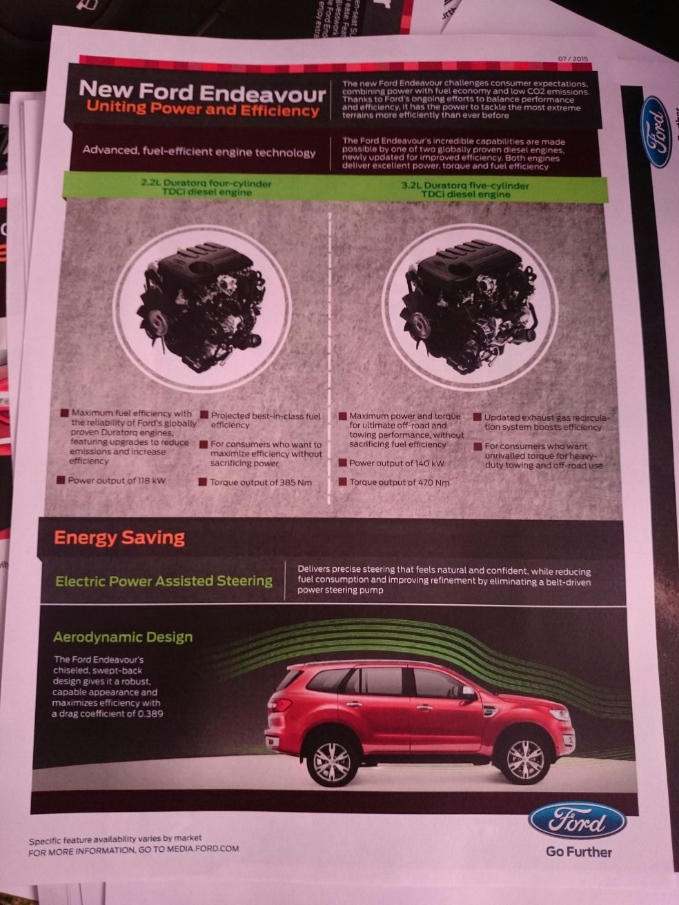 Following is the specification chart for the new Ford Endeavour: