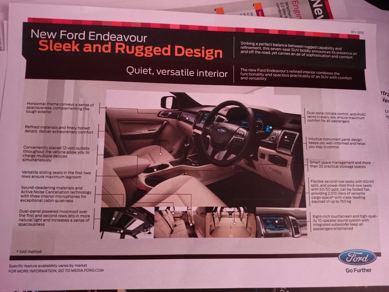 Ford India launched the all new Endeavour, its seven-seater SUV. Its front fascia with signature LED daytime running lights and wide stance gives it a different presence on the road. The interior provides a seating space for up to seven adult occupants. The interior design has around 30 storage spaces, multiple power outlets and seating and cargo arrangements that include fold-flat second- and first-in-class power-fold third-row that flattens with a button touch. With all the rear seats folded, the Endeavour can hold up to 2,010 litres of cargo. It also features electric panoramic sunroof that opens up to the first two seating rows in the top end variant.