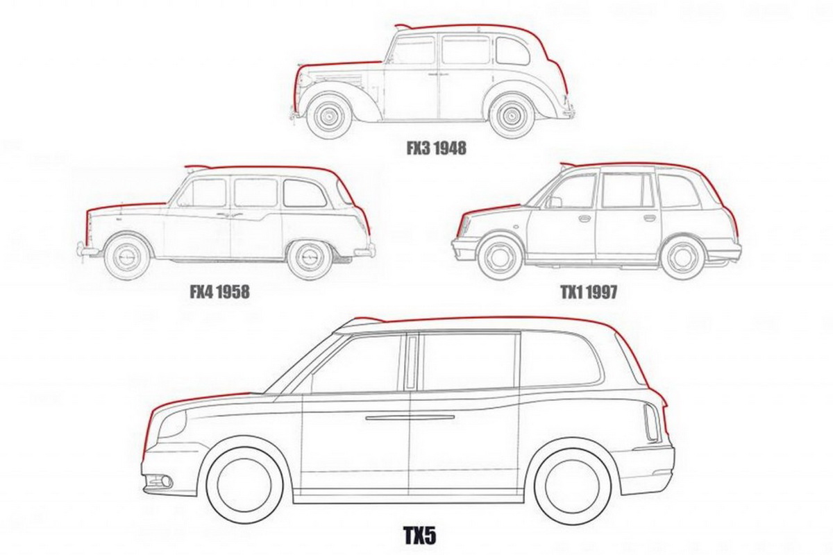 The TX5 is designed by LTC and will be built on Chinese electric vehicle technology. Penned in Barcelona by British designers, the TX5 styling takes come of its styling cues from the Austin FX4 cab. The tall grille, round headlights and its pronounced belt line are clearly inspired by the FX4 cab that was introduced in 1958. The retro inspiration is only visual, though, as the TX5 is built around an aluminum body structure wrapped in composite panels