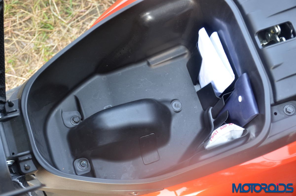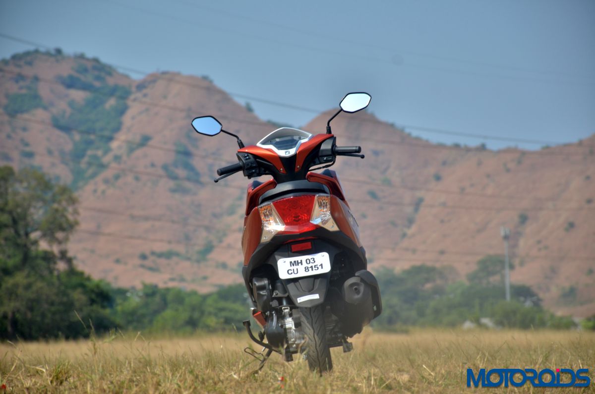 The Grazia rides on telescopic front suspension and the overall setup is on the softer side, a little too soft for my liking. But the setup is aimed to deliver a plush ride quality and it does not disappoint. The new Honda Grazia would glide over any undulations without breaking your back. The wide and well-padded seat further enhances the overall experience, even when you have to park your rear on it for a longer duration. Tall folks would have a great time too as the floorboard is large and can comfortably accommodate long legs.