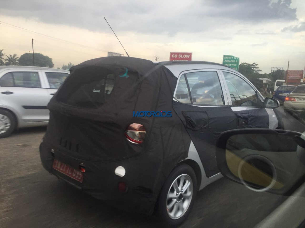 The upcoming Hyundai Grand i10 facelift, fully camouflaged, has been caught testing by Motoroids reader Apurv Gautam on the Bangalore Chennai Highway near the Hyundai plant. Hyundai has already revealed the new i10 (sold as the Grand i10 in India) before its public debut at the Paris Motor Show in early October 2016. To be launched in Europe and India simultaneously in and around November, the face-lifted hatchback receives subtle aesthetic and technological upgrades.