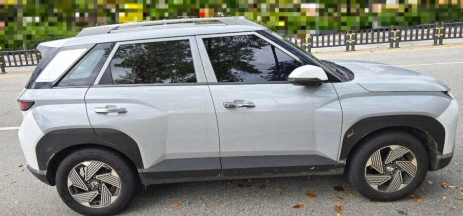 - Split headlamp design with upper portion inspired by Ioniq 9 and lower quad headlamps from the Creta