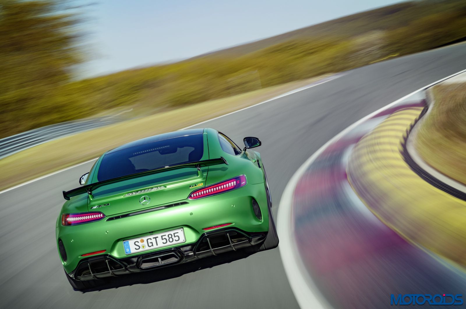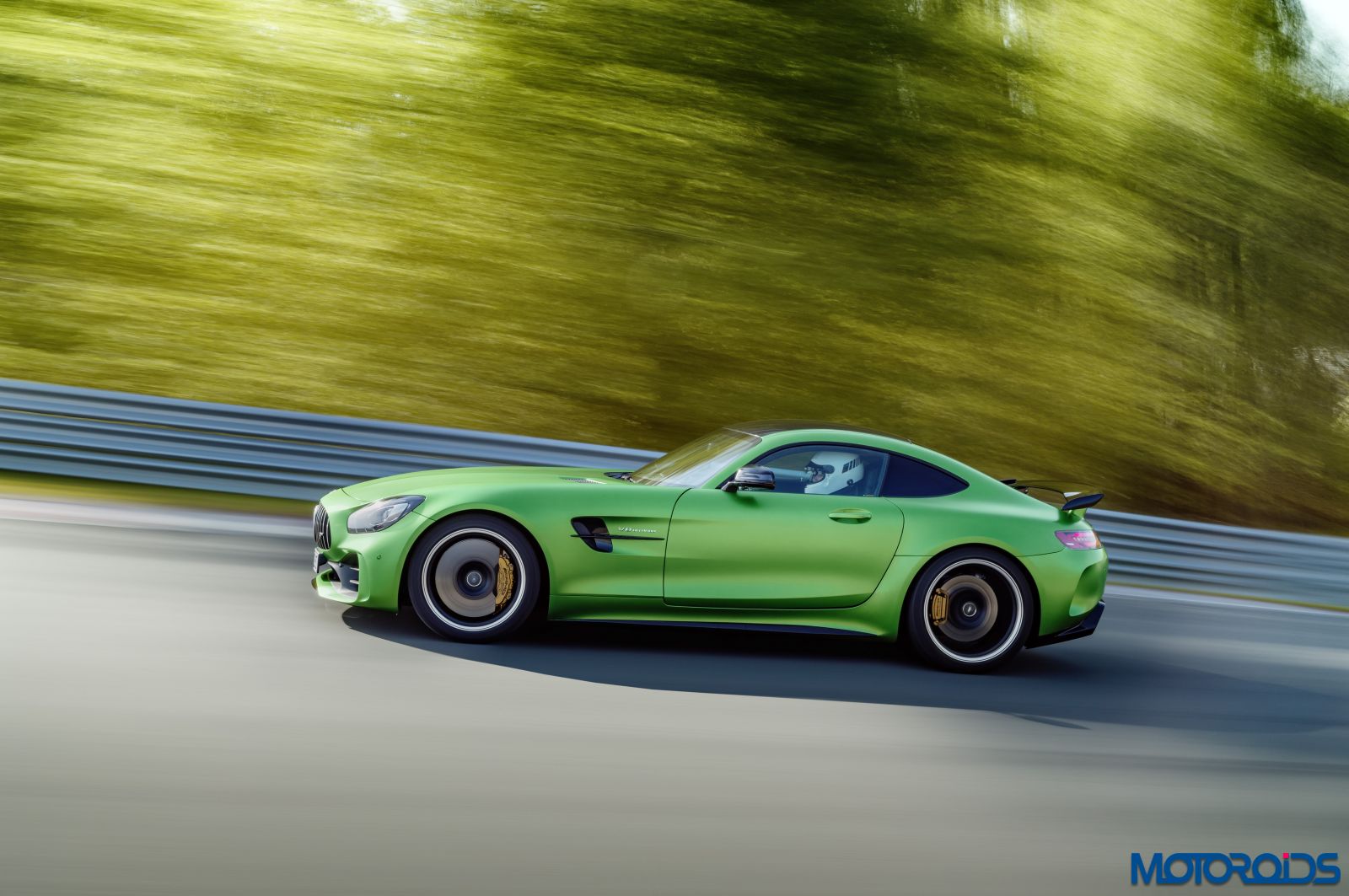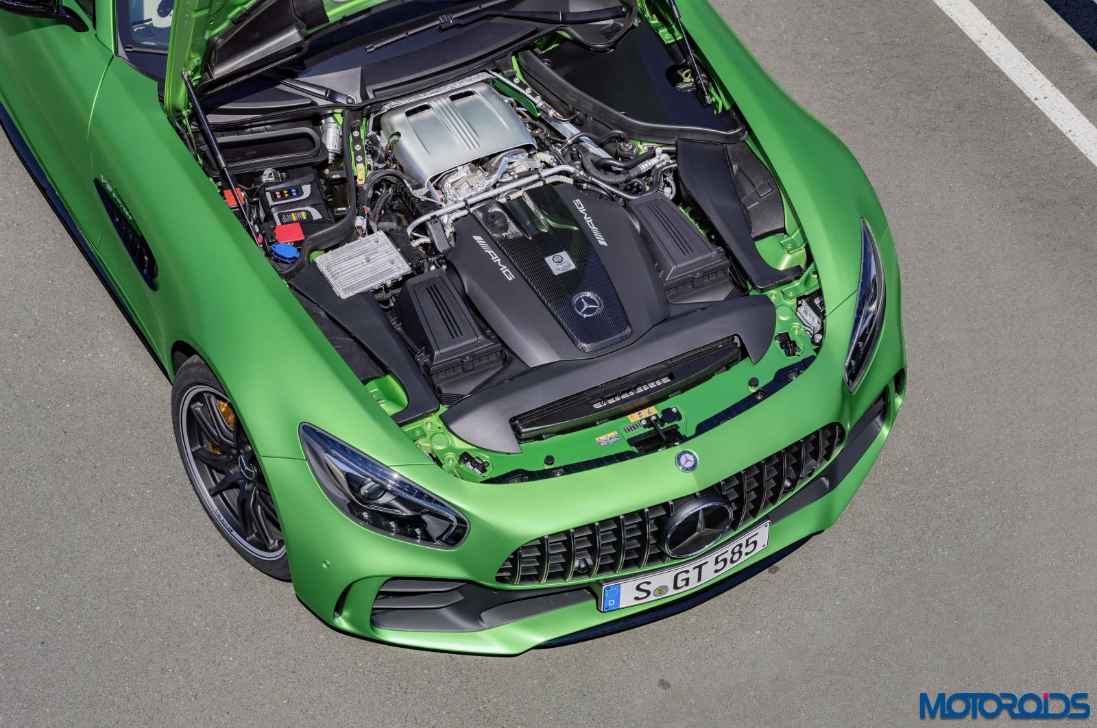 Powering the model is an upgraded version of the twin turbocharged 4.0 litre V8 motor from AMG. This engine has now been tuned to produce colossal power output of 577 hp while the peak torque is rated at a monstrous 700 Nm. This powerplant, mated to a modified seven speed dual clutch transmission pushes the AMG GT-R from naught to 100 kmph in a mere 3.6 seconds, 0.2 seconds faster as compared to the AMG GT-S. The claimed top speed of the model stands at a whopping 318 kmph!