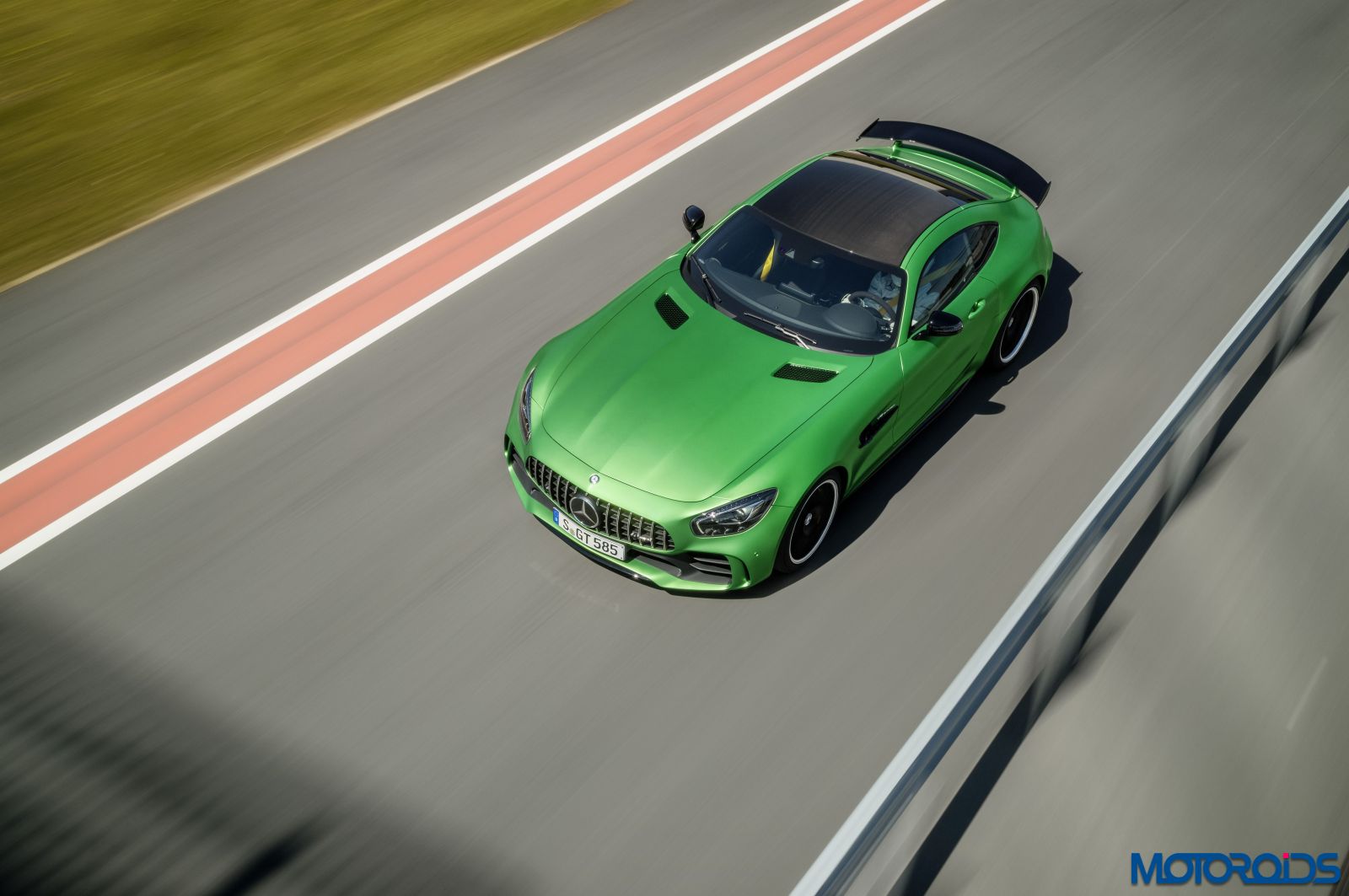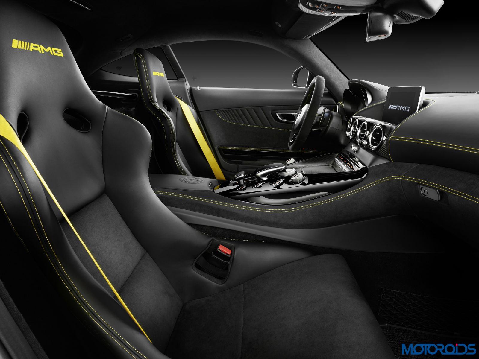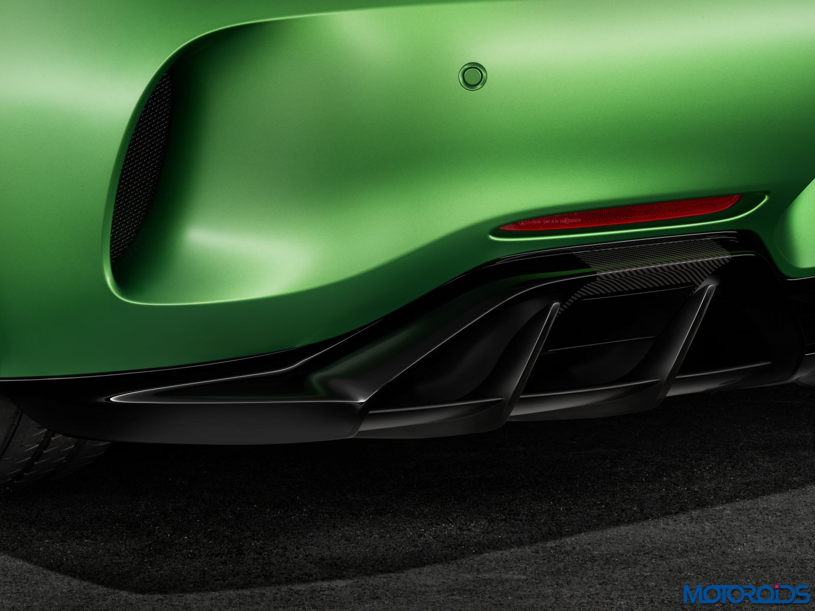 On the outside, the model receives a shade of matte green, known as AMG Green Hell Magno in Mercedes speak. The name was inspired from the Nürburgring Nordschleife circuit in Germany, referring to the location where the model was largely developed. New features include the Panamericana grille from the GT3, a carbon fibre roof and new air intakes at the front and rear; both housed in a carbon fibre bumper. The latter, weighing only two kg, moves downward by 40 mm in RACE mode, reducing the front axle lift by 40 kg at 250 kmph.