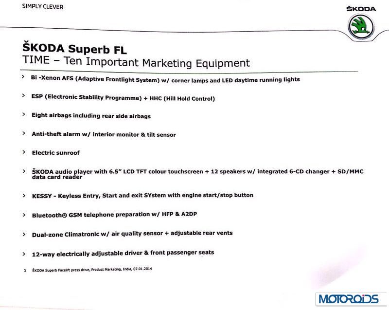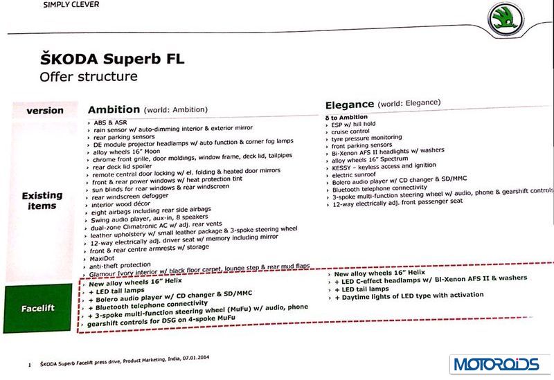 New Skoda Superb Spec Sheet, Changes, Features and More Details