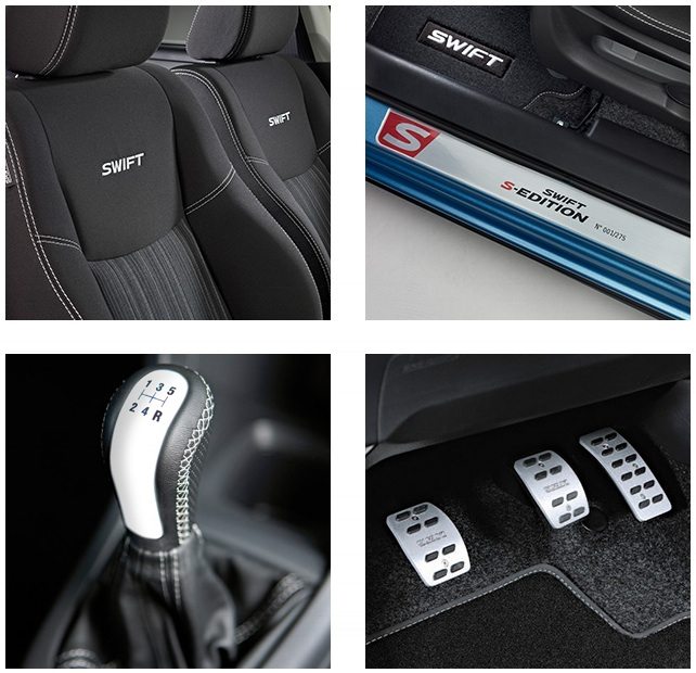 On the inside, the new Suzuki S-Edition gets an exclusive number on its sill planes, a set of sport pedals, special shifter knob, new floor mats and ‘Swift’ embroidered on to the front seats. The flagship variant comes with cruise control, an audio player with CD/MP3/CD compatibility, ABS with EBD, ESP and seven airbags.