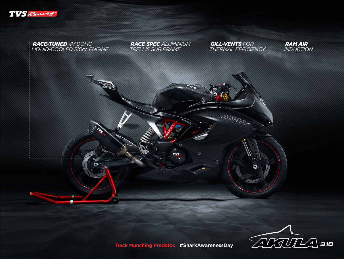 The Akula 310 was previewed by TVS as a scintillating concept stole that the show at the 2016 Auto Expo in Greater Noida with its race-bred internals, a gyro-cam and a full, bare carbon fiber body. In production form however, things will be slightly watered down.