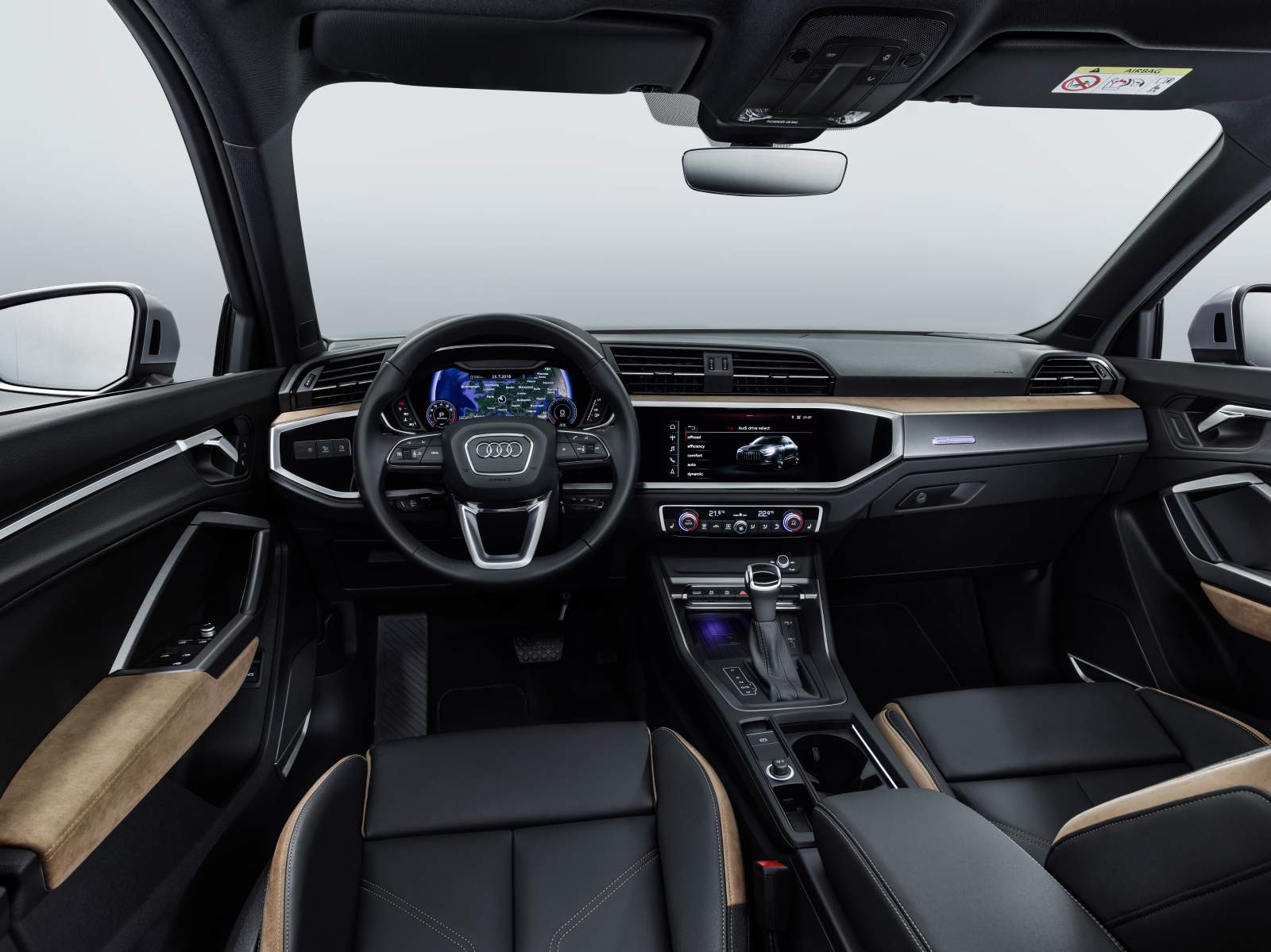 The new Q3’s operating and display concept has been overhauled from the ground up. In Sport and S line versions the fully digital MMI touch display with 10.1-inch screen in the centre of the instrument panel is standard, as is MMI navigation plus and the Audi Virtual Cockpit with a 10.25 inch screen within the binnacle.