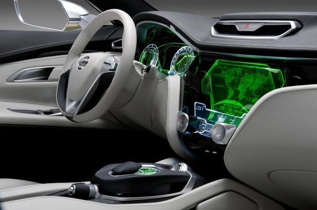 The concept also has Nissan’s XTRONIC continuously variable transmission and a four-wheel drive system. The car’s front fascia is dominated by a V-shaped grille and the body has smooth flowing lines. The inside seems to be borrowed from the interiors of some Star Trek movie’s space ship with an electronic touch-screen control.