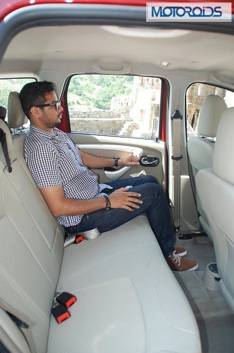 The AC controls are un-ergonomically placed under the stereo and ahead of the gear shifter lever. It also provides two cup holders ahead of the gear shifter lever and a 12 V socket. Another inconvenient feature remains the ORVM adjustment knob, which is placed right under the handbrake lever. This renders it in operational on the go.The headlight level adjuster knob is again oddly placed next to the hood release lever near the driver footwell. The passenger side contains a recessed storage as well as a deep, lit glove compartment.