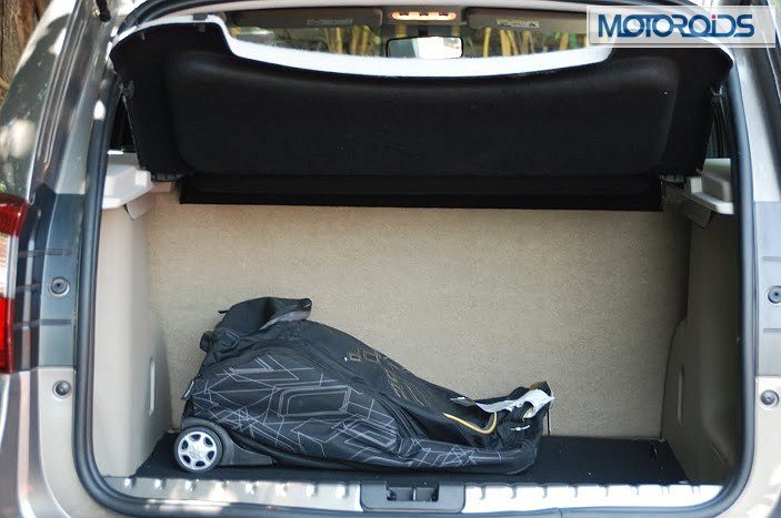 The boot space, at 475 litres, is more than enough to contain most of our weekend luggage and then some more. The tough and recessed parcel shelf spanning the entire boot section is good to dump things on the go without having the fear of it moving around while the car is driven enthusiastically. The Terrano also gets a 12 v socket behind the rear passenger on the left, as well as dedicated roof mounted reading lights. Lift up the carpet in the boot and it reveals a flat floor. The spare wheel is tucked under the car and can be accessed by lowering the spare wheel cradle. This in particular is a thoughtful design and will turn out to be a boon when the boot is loaded with luggage. Also, it will also keep interiors from soiling during tyre replacement.
