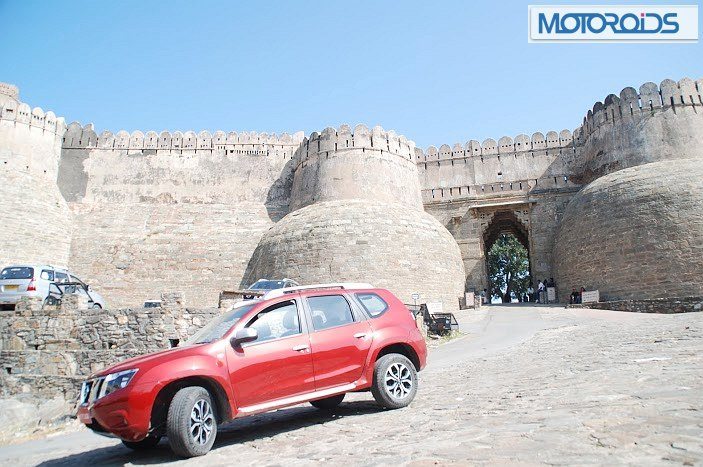At speeds of around 20-30 kph, the suspension feels a bit harsh as the irregularities get filtered in, however step on the gas and the Terrano floats over anything up to small speed breakers with quite an aplomb. While on the drive back to the airport from the picturesque Kumbhalgarh fort, the Terrano got its fair share of broken patches and a chance to display its fantastic setup. The monocoque structure further helps the suspension setting to aid the Terrano`s drive and handling. All this while, the high ground clearance and suspension take the rough with the ease. We felt blessed driving the Terrano on a single lane, which had on display monsoon`s relentless wrath. We faced state transport buses and other aggressive local vehicles hurtling down at us, all we needed to do was drop a set of wheels of the tarmac and continue without bothering about the lunar like road surface.