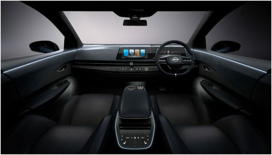 The design elements on the Ariya are quite bold and attractive, thanks to the front V signature line grille that blends with the LED headlamps, while the illuminated logo with sharp creases gives the car a more rugged look. At the rear, the LED tail lamp is spread across the tailgate of the car, giving it a futuristic appeal, while the intricate details on the inside give the Ariya a complete luxury crossover look. In terms of space and comfort, the car looks more like a lounge than any other conventional vehicle, as the presence of a flat floor and thin seats provide better space for the passengers as well as for the driver. The dash has a minimalistic design with almost no mechanical buttons, as the start-stop button, the climate control and the rotary dial are all touch-enabled. The huge 12.3-inch touchscreen infotainment system looks quite sleek and feature-loaded.